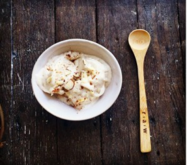 Place all ingredients into a blender or food processor and blend until smooth and creamy. If bananas are too frozen, add 1 tablespoon of water. Add chopped seeds or nuts!